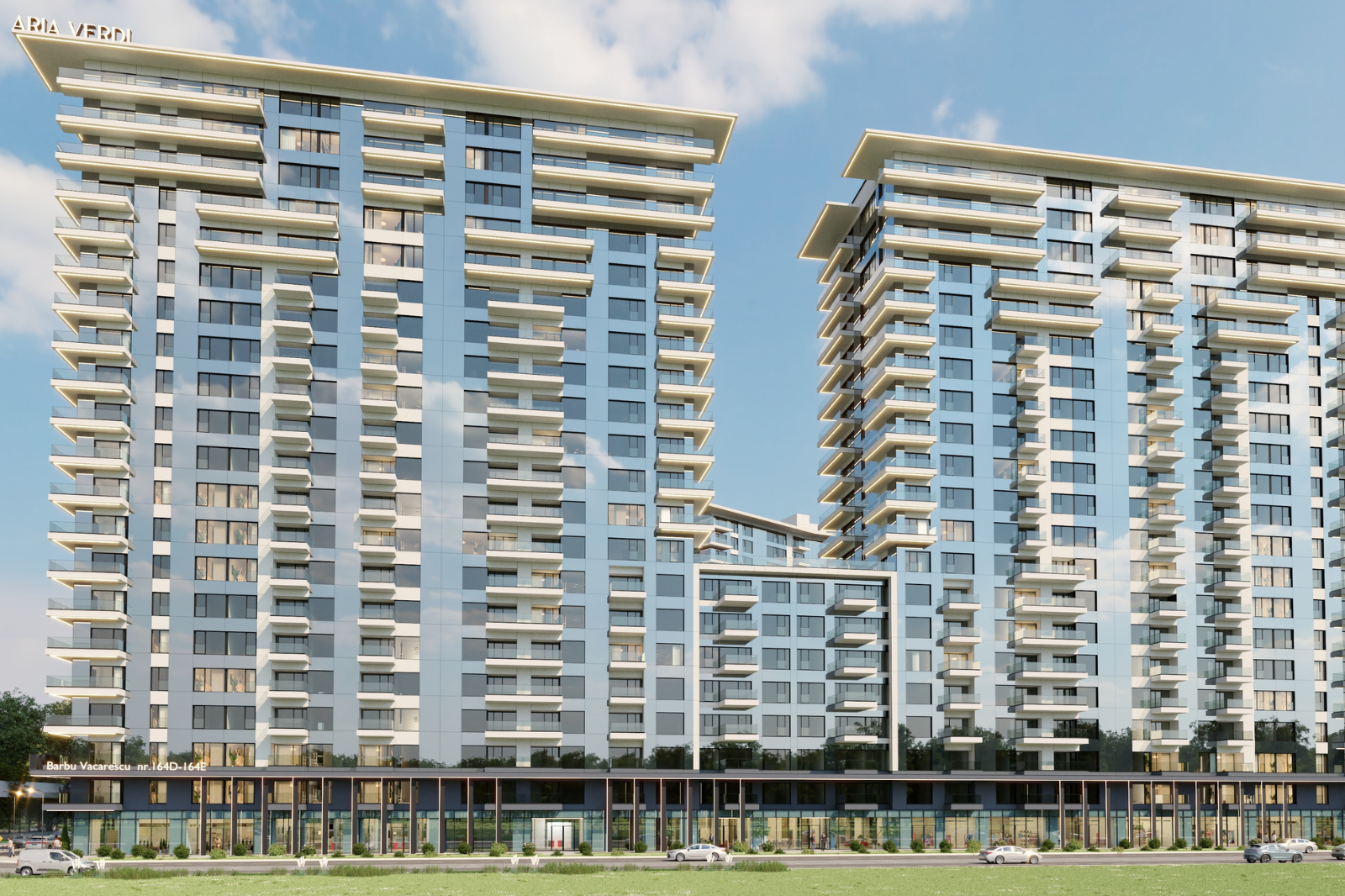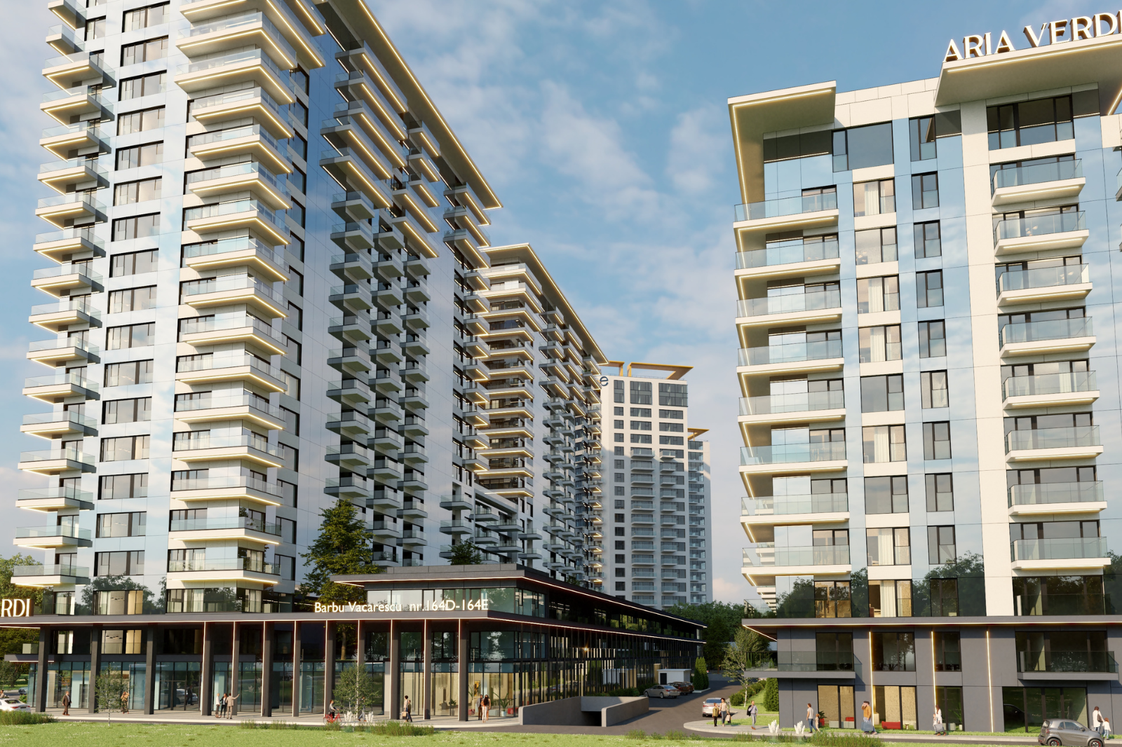 Located in Barbu Văcărescu, one of the most beautiful and desirable areas of the Capital, ARIA Verdi will offer a spectacular view of the city, being surrounded by parks and lakes. The compound aims to raise the standard of quality of living in the premium segment, including a series of modern facilities: shopping galleries, office spaces, wellness area (swimming pool, fitness), restaurant and large green spaces.